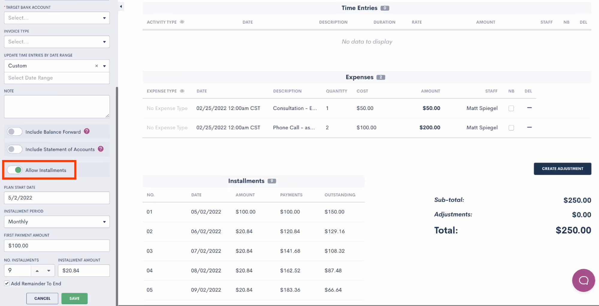 We can easily see that Criminal Defense was the most used practice area in the graph above. Also notice how you have the option to subgroup, as shown in the top right corner in the image above. This will add a second grouping by that field within each main group.
