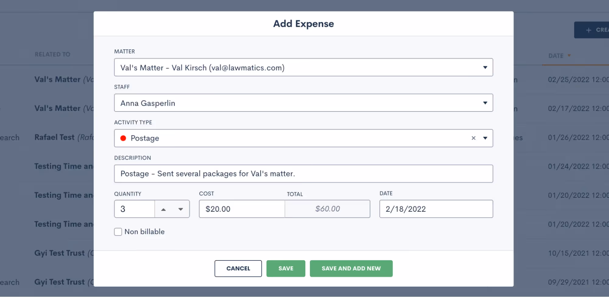 In order to get insightful ROI results you will also need to make sure you populate the revenue on each matter into the built-in Actual Value field. This step is crucial for making sure you get an accurate return on investment calculation.Remember, you’ll populate both the estimated value and actual value in the details page on any matter.
