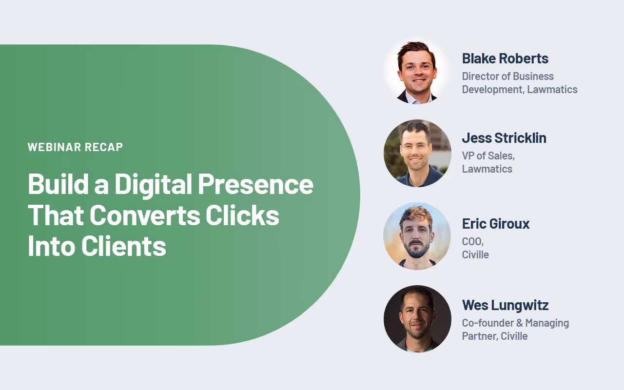 In today’s competitive legal market, it’s not enough to simply have a digital presence — your online footprint needs to be fast, credible, and built to convert. In our latest webinar, we teamed up with the experts at Civille to break down exactly how law firms can strengthen their online presence and turn digital interest into real-world results. From the latest changes in search behavior to practical steps you can implement right away, here’s a recap of the insights.