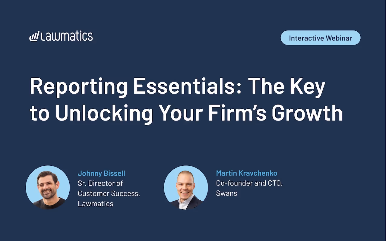 As law firms pour ever-larger sums into digital marketing and client acquisitioßn, growth hinges on more than a bigger budget — it hinges on knowing exactly which efforts drive revenue. Simply having data isn't enough; what matters is connecting data points so you see the story behind every lead and every dollar.In our latest webinar, Reporting Essentials: The Key to Unlocking Your Firm’s Growth, we were joined by Martin Kravchenko, co-founder and CTO of Swans, who showed exactly how to build that visibility. We walked through the foundations of airtight marketing attribution, intake analytics, and firm-wide dashboards that help achieve sustainable profitability.