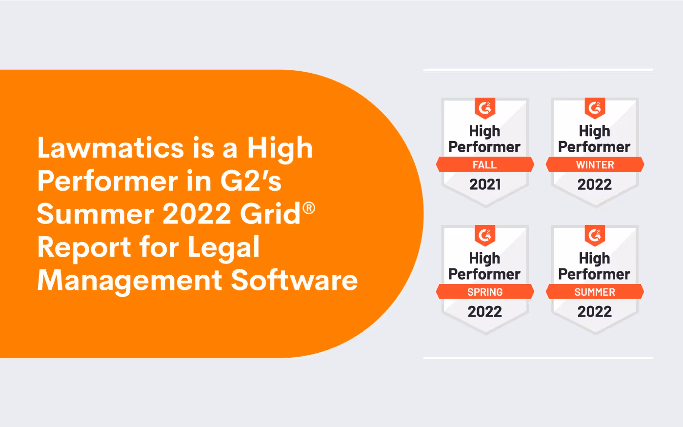 We are thrilled to announce that G2 has once again ranked Lawmatics as a high performer for the 4th quarter in a row for their Summer 2022 Grid®️ Report for Legal Practice Management Software. After working so hard to deliver the best possible product to our customers, it goes without saying that the recognition is an honor!