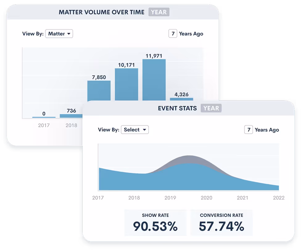 Time is the most critical resource for your firm. With Lawmatics law firm CRM visual reporting and analytics, you can make your processes 10x more efficient.