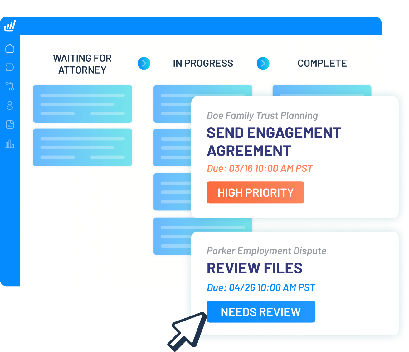 Disjointed intake slows teams down and creates unpredictable variation across offices and practice areas. Lawmatics replaces ad hoc processes with standardized intake workflows that keep everyone aligned. Every lead follows the same clear path, making handoffs easy and reducing delays for both staff and clients.