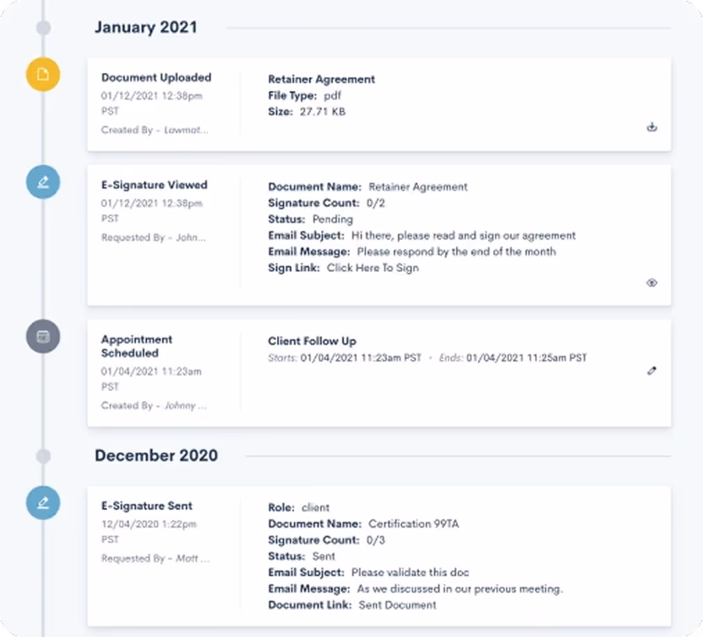 Lawmatics is software for paralegals who need to keep tasks moving without missing a step. Use marketing automation to handle routine work like file requests, appointment reminders, and client updates so nothing slips through the cracks. With built-in management software features, you’ll always know what’s done, what’s next, and where every client stands.